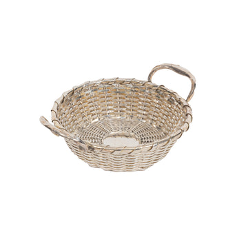 19. yüzyıl Fransız zanaatkârlığının zarafetini taşıyan bu gümüş kaplama mini ekmek sepeti, 12,5 cm’lik kompakt boyutu ve kulplu formuyla dönem estetiğini masa üstüne taşır. Narin işçiliği ve antika havası, özellikle klasik Fransız mutfak stilini sevenler için vazgeçilmez bir detaydır. Küçük ekmek dilimlerini ya da kruvasanları zarif biçimde sunabileceğiniz bu şık obje, aynı zamanda masa üstü dekorasyonuna nostaljik bir dokunuş katar. Gümüş yüzeyindeki hafif patina, zamanın izlerini zarafetle yansıtırken sepetin dengeli ayak yapısı güvenli kullanım sağlar. Vitrin koleksiyonlarını süsleyebilecek nitelikte olan bu özel obje, hem işlevsel bir sunum ürünü hem de dekoratif bir antika parçasıdır.