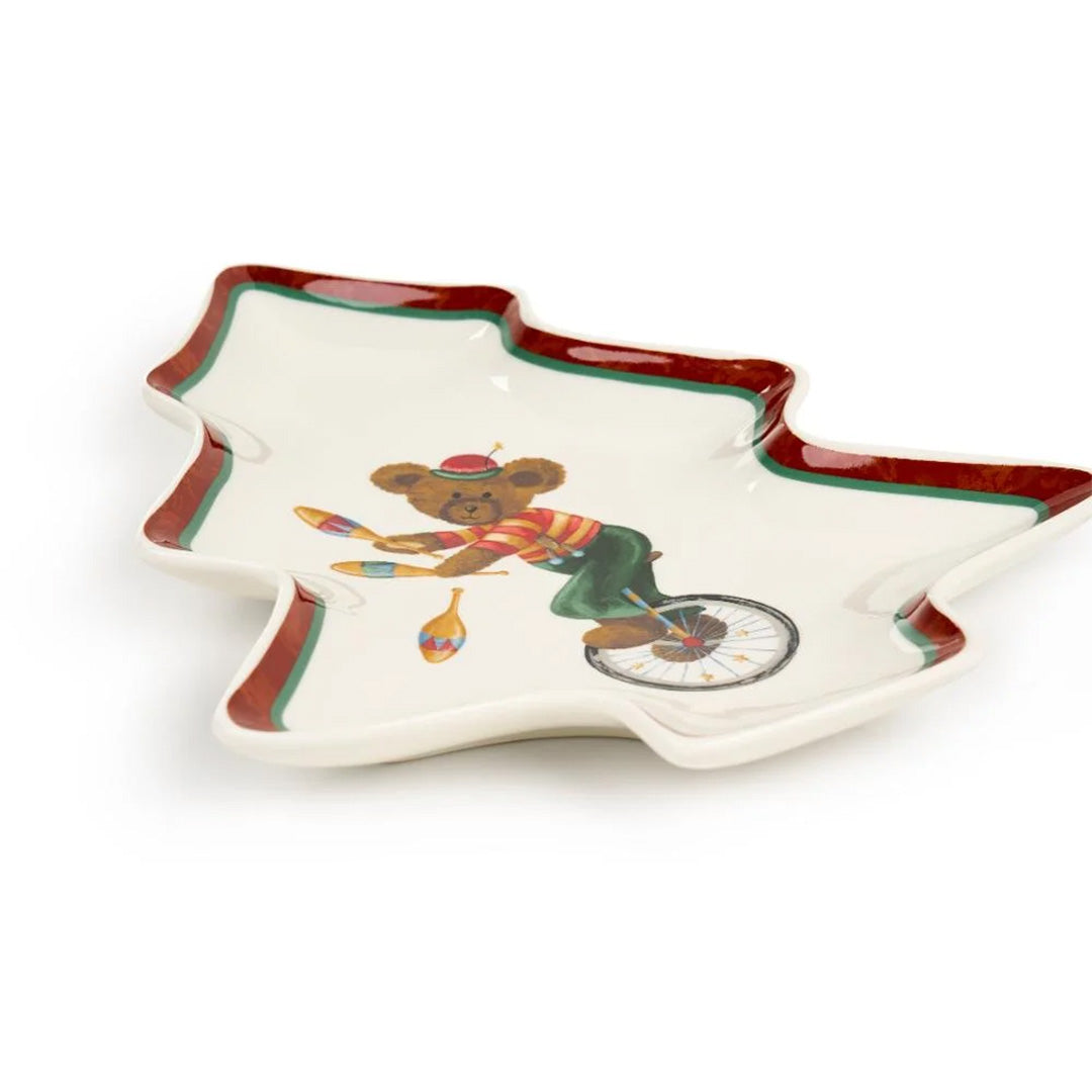 Bu şık 2'li ağaç şeklinde porselen tabak seti, yılbaşı sofralarınızda eğlence ve zarafeti bir araya getiriyor. Tabakların üzerindeki sevimli ayıcık tasarımları, çocukların ve yetişkinlerin beğenisini kazanırken sofranıza neşeli bir hava katıyor. Kırmızı kenar detayları ve özel yılbaşı konsepti, bu tabakları hem işlevsel hem de dekoratif bir hale getiriyor.