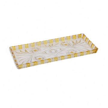 1940’lı yıllarda Almanya’da üretilmiş bu kristal kesme servis, 33x14 cm ölçülerinde dikdörtgen formda sunulmaktadır. El işçiliğiyle kesilmiş detaylar, kristalin ışıltısını ön plana çıkarırken, zamansız bir şıklık sunar. Özellikle çerez, tatlı veya meyve sunumları için ideal bir yüzeye sahip olan bu servis tabağı, masalarda estetik bir dokunuş yaratır. Yüksek kaliteli kristal kullanımı ve dönemin izlerini taşıyan tasarımı, hem günlük kullanım hem de koleksiyon amaçlı tercih edilebilir. Vintage dekorasyon severler için vazgeçilmez bir parça olan bu kristal tabak, nostaljik bir şıklık sunar.