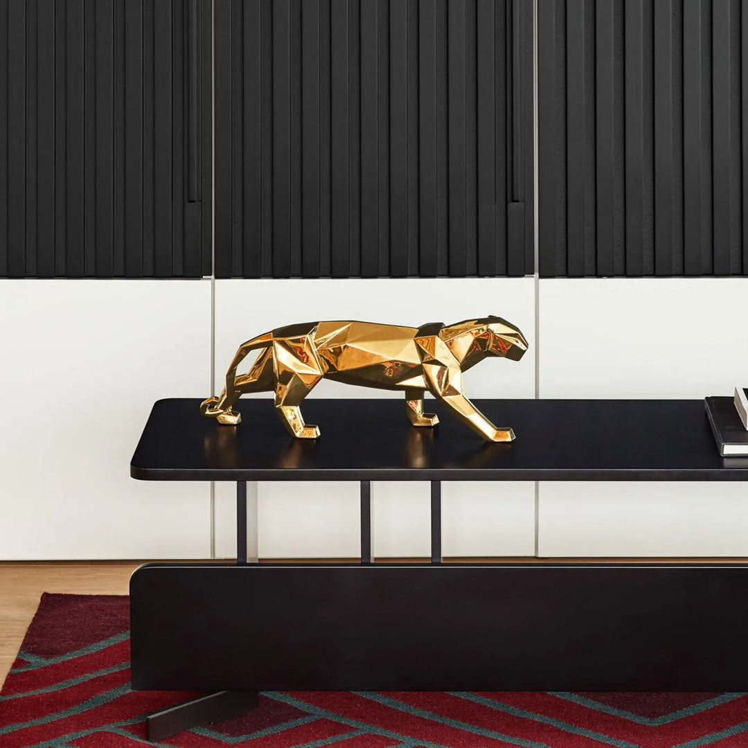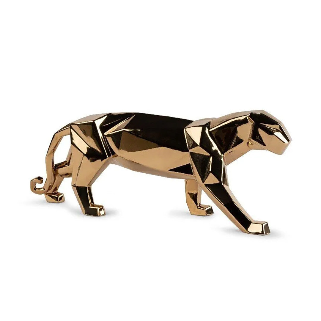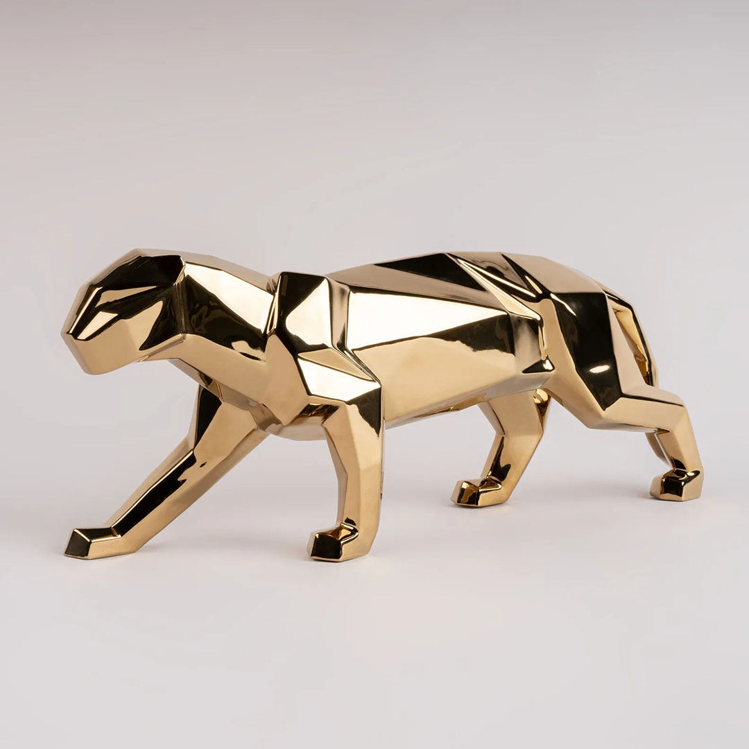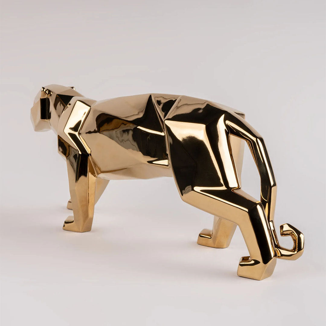 Altın Panter heykelciği, Lladró'nun Origami koleksiyonundan yenilikçi bir parçadır. Origami koleksiyonu, artık zarif altın metalik bir kaplamaya sahip olan porselen Panter'in yeni bir versiyonunu ekliyor. Bu koleksiyondaki diğer parçalar gibi, geometrik formların kağıt katlanarak güçlü heykelsi ve dekoratif yönlere dönüştürüldüğü geleneksel Japon origami sanatının çağdaş ve yenilikçi bir yeniden yorumudur. Yenilikçi stili sayesinde Panter, her türlü ortam ve dekor stiline kusursuz bir şekilde uyum sağlar: ister yatak odasına, ister modern tarzda bir oturma odasına veya daha klasik bir salona yerleştirilsin, bu parça tüm misafirlerinizin dikkatini çekecektir. Lladró'nun işçiliği, ayrıntılı ve titiz bir dikkatle vurgulanır; her eğri, ışığı farklı bir şekilde yansıtacak şekilde tasarlanmıştır ve bu muhteşem avcının kasını ve gururunu vurgulayan ince gölgelerle figürü canlandırır. Panter heykelciği, eve taşınma partileri veya diğer özel günler için mükemmel bir hediye fikridir. Marco Antonio Noguerón tarafından Lladró için tasarlanmıştır.