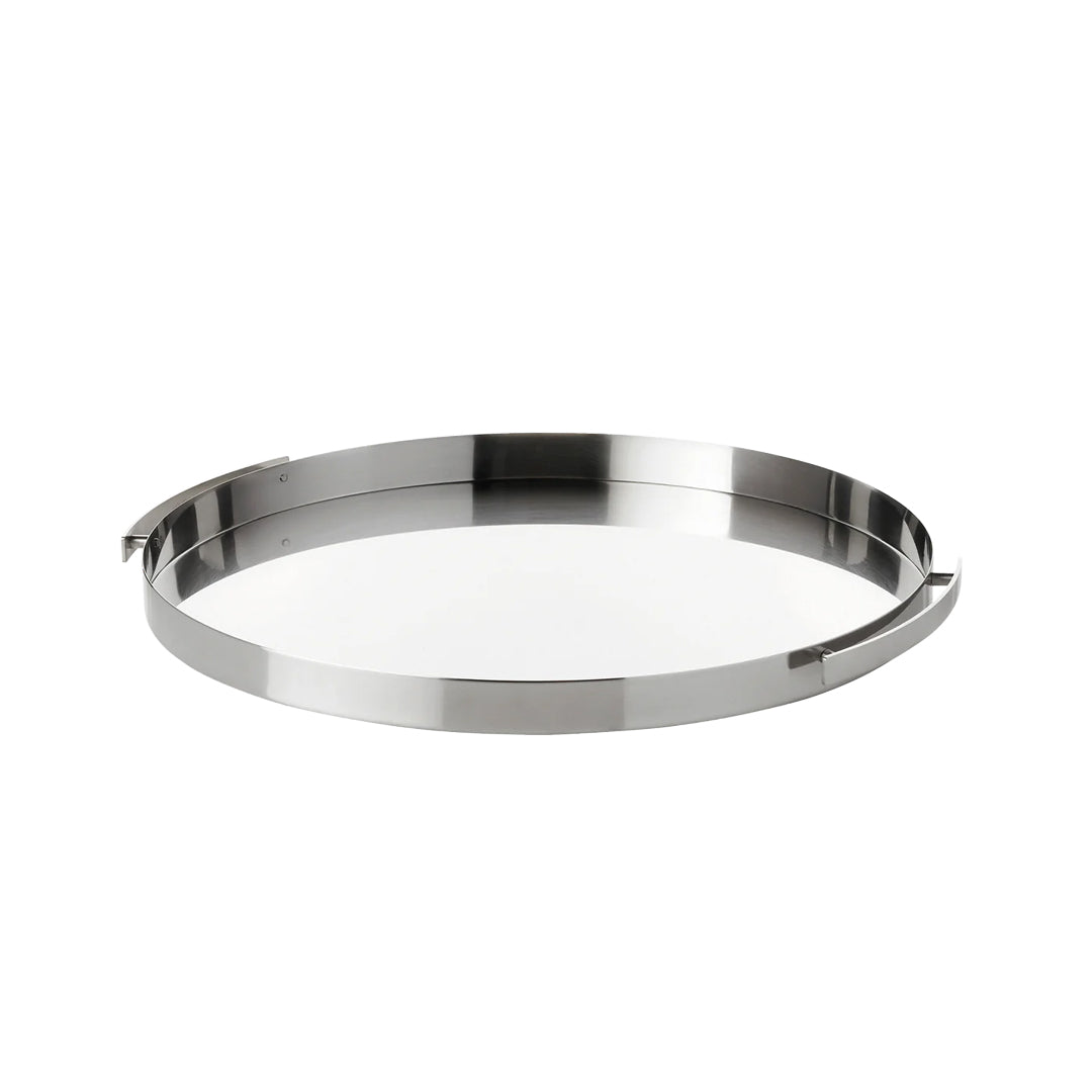 Cylinda-line serisindeki Arne Jacobsen servis tepsisi, kahve makinesiyle veya ikonik koleksiyondan bar eşyalarıyla kullanım kolaylığı sunan silindirik kulplara sahiptir. Servis tepsisi paslanmaz çelikten yapılmıştır ve çapı 33,5 cm'dir.