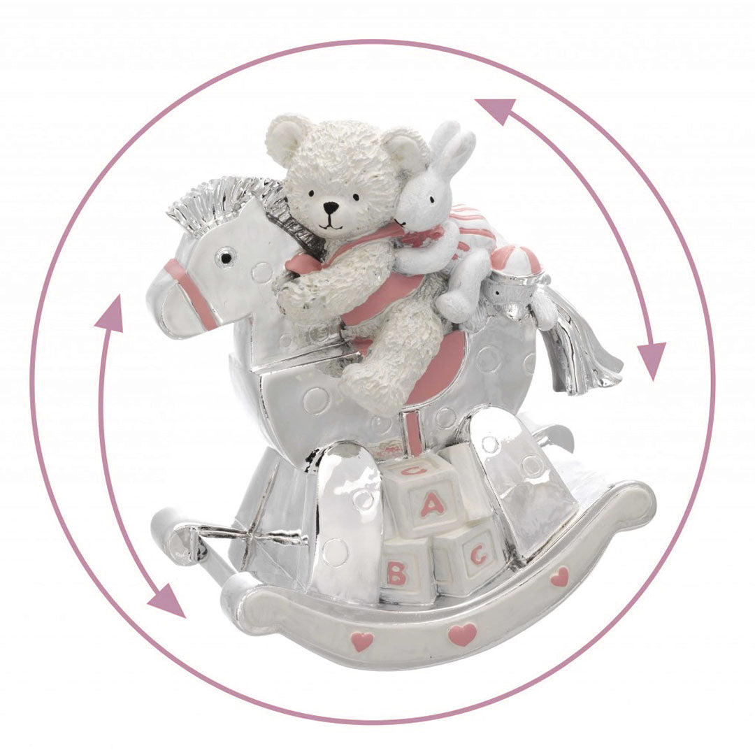 Sevgi, zarafet ve huzurun buluştuğu Bagutta Pembe Ayıcıklı ve veTavşanlı Müzik Kutusu, bebek odalarına sıcaklık ve tatlılık katan büyüleyici bir aksesuardır. Üzerindeki sevimli pembe ayıcık ve sallanan at detayı, narin melodisiyle birleşerek miniklerin hayal dünyasına huzurlu bir tını sunar. Her çaldığında odayı dinginlik ve sevgiyle dolduran bu müzik kutusu, sadece bir dekorasyon değil, aynı zamanda duygusal bir hatıradır.