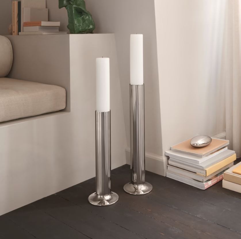 Bu şık Bernadotte yer mumluğuyla evinize Art Deco zarafetini getirin. Özel yivli dekorasyonuyla tek başına harika çalışır ve diğerleriyle eşleştirildiğinde daha da güçlü bir odak noktası oluşturur. Tutucunun, mumu güvende ve emniyette tutmak için dahili bir çivisi vardır ve Georg Jensen'in kendi mumlarıyla mükemmel uyum sağlayacak şekilde tasarlanmıştır.