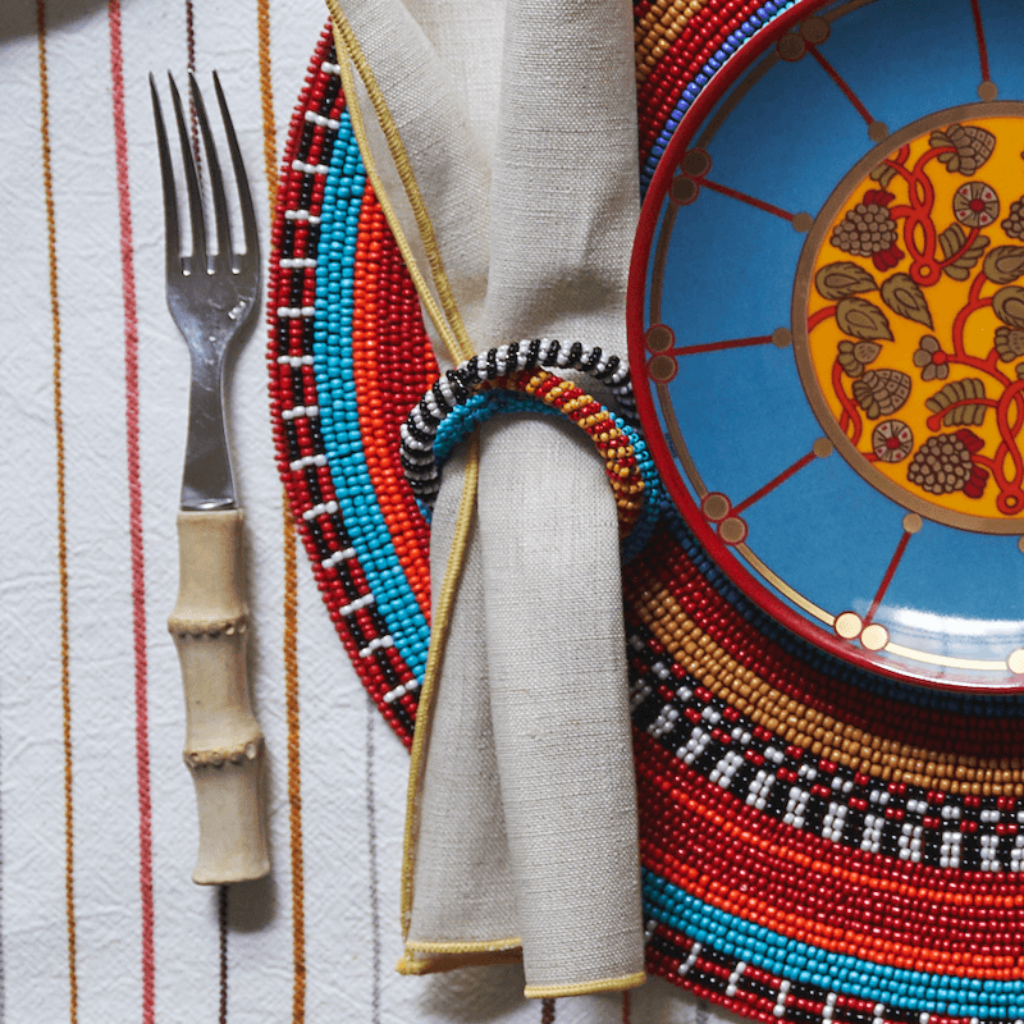 Şık bilezikler veya cesur küpeler gibi göz alıcı bir aksesuar da her zaman zarafet katar. Canlı tonlardaki bu birbirine geçen boncuklu peçete halkaları, mükemmel bir son dokunuş. Üç canlı renkte mevcuttur.