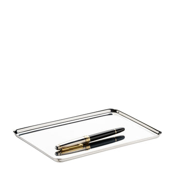 Büyük Dikdörtgen Servis Tepsisi, zarif oranları ve gümüş kaplama yüzeyiyle sunumlara sofistike bir karakter kazandırır. İnce formu ve dengeli ölçüleri sayesinde kahve yanında ikramlık, çikolata, lokum veya küçük atıştırmalıkların şık bir şekilde sunulmasına olanak tanır. Parlak gümüş kaplama yüzey ışığı yansıtarak masaya lüks bir ışıltı ekler.