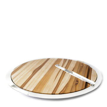 Cassino Yuvarlak Ahşap Peynir Tabağı, doğal ahşap dokusu ile gümüş kaplama detayların zarafetini bir araya getirir. Ø40 cm geniş yüzeyi, peynir, şarküteri ve atıştırmalık sunumları için ideal alan sağlar. Ahşabın sıcak tonu ile gümüş detayların ışıltısı arasında sofistike bir denge kurar.