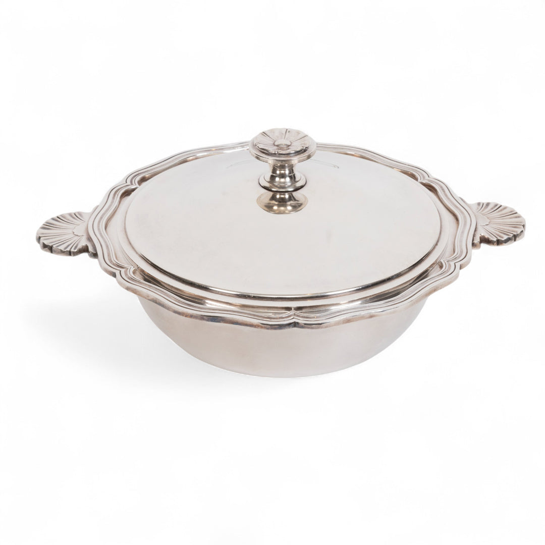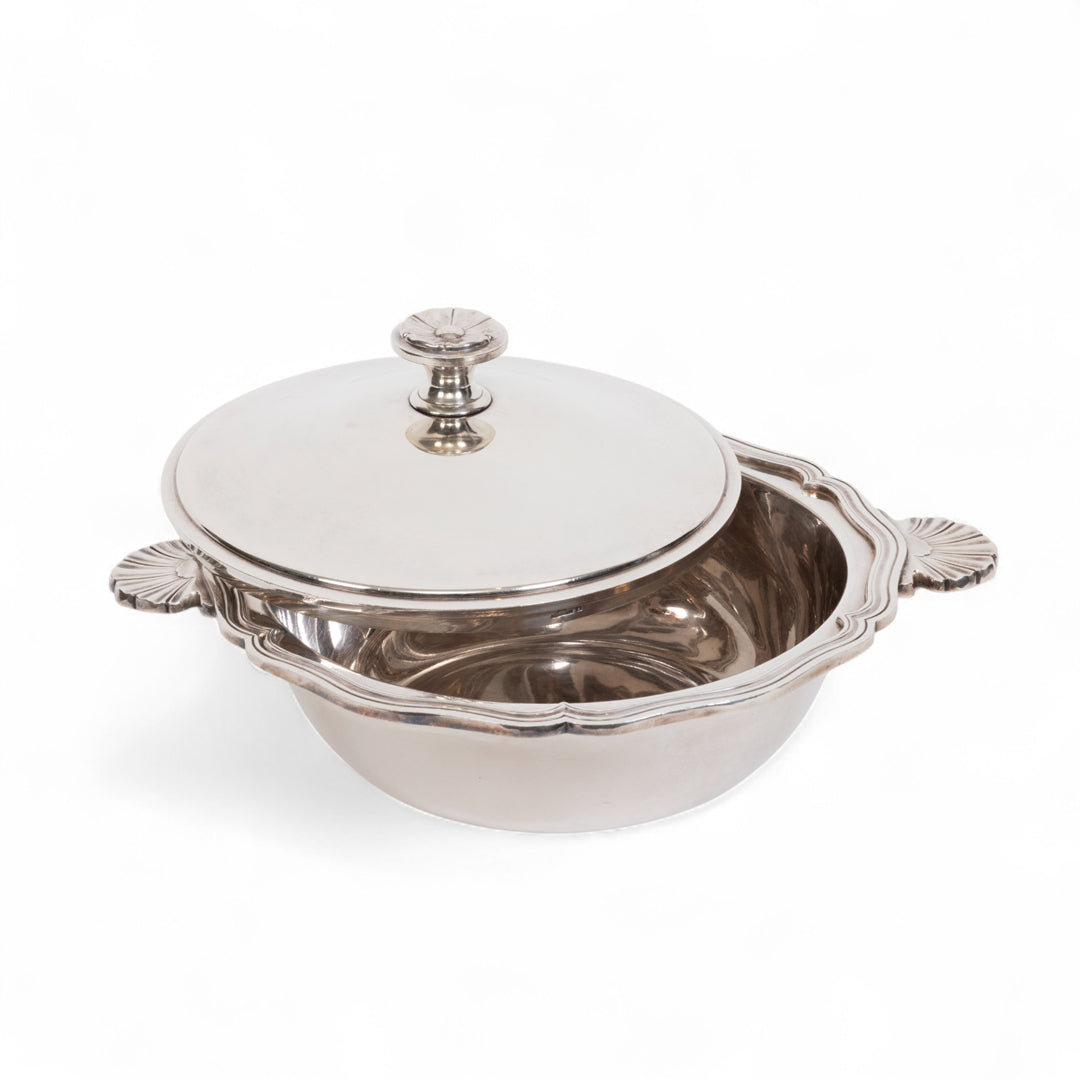 Özellikle özel davet sofralarında sıcak yemek sunumları için tercih edilen bu kapaklı sebzelik, yalnızca kullanım amacıyla değil, şık bir masa dekoru veya koleksiyon değeri taşıyan bir obje olarak da öne çıkar. Kapak kısmındaki zarif tepe detayı ve ergonomik kulpları, kullanım kolaylığı sunarken; yüksek kalite malzeme ve işçilik Christofle’nin prestijini yansıtır.