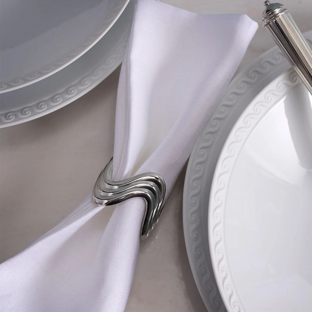 L'objet Dalgalı Peçete Halkaları, sofralarınıza modern zarafetin ve kusursuz detayların eşlik etmesini sağlar. Akışkan dalga formundan ilham alan tasarımı, klasik peçete sunumunu sofistike bir dekoratif unsura dönüştürürken platin kaplamanın yumuşak ışıltısı masaya seçkin bir atmosfer kazandırır. Her biri özenle işlenmiş bu peçete halkaları, özellikle özel davet sofraları, yılbaşı kutlamaları ve şık akşam yemekleri için ideal bir tamamlayıcıdır.