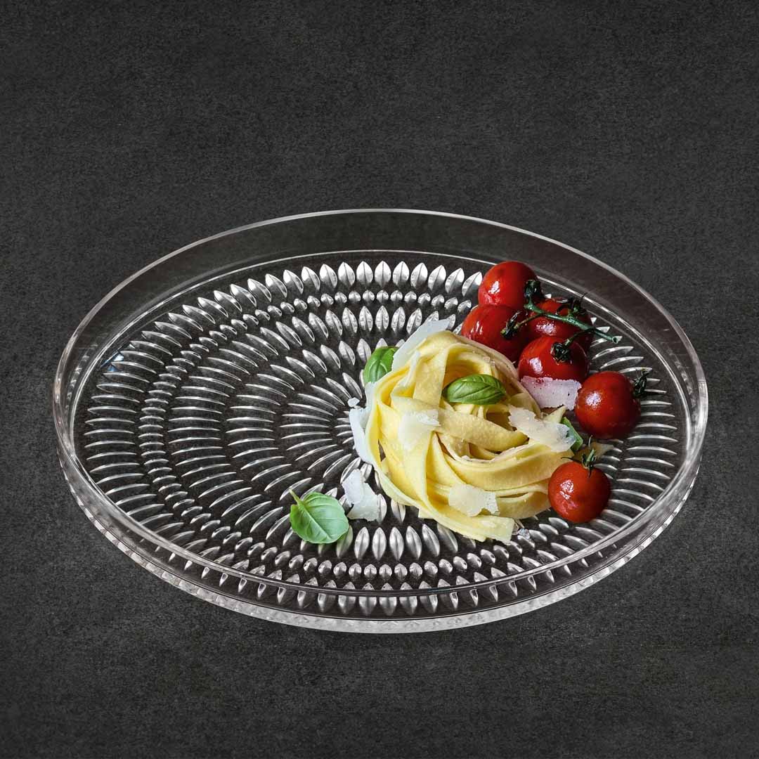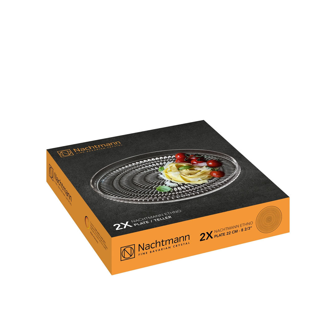 Nachtmann Ethno koleksiyonuna ait bu 22 cm çapındaki kristal tatlı tabakları, şık sunumlar için mükemmel bir tercih. Tatlılar, atıştırmalıklar veya küçük başlangıçlar için ideal olan bu tabaklar, kristalin ışıltılı yüzeyiyle sofranıza zarafet katıyor.