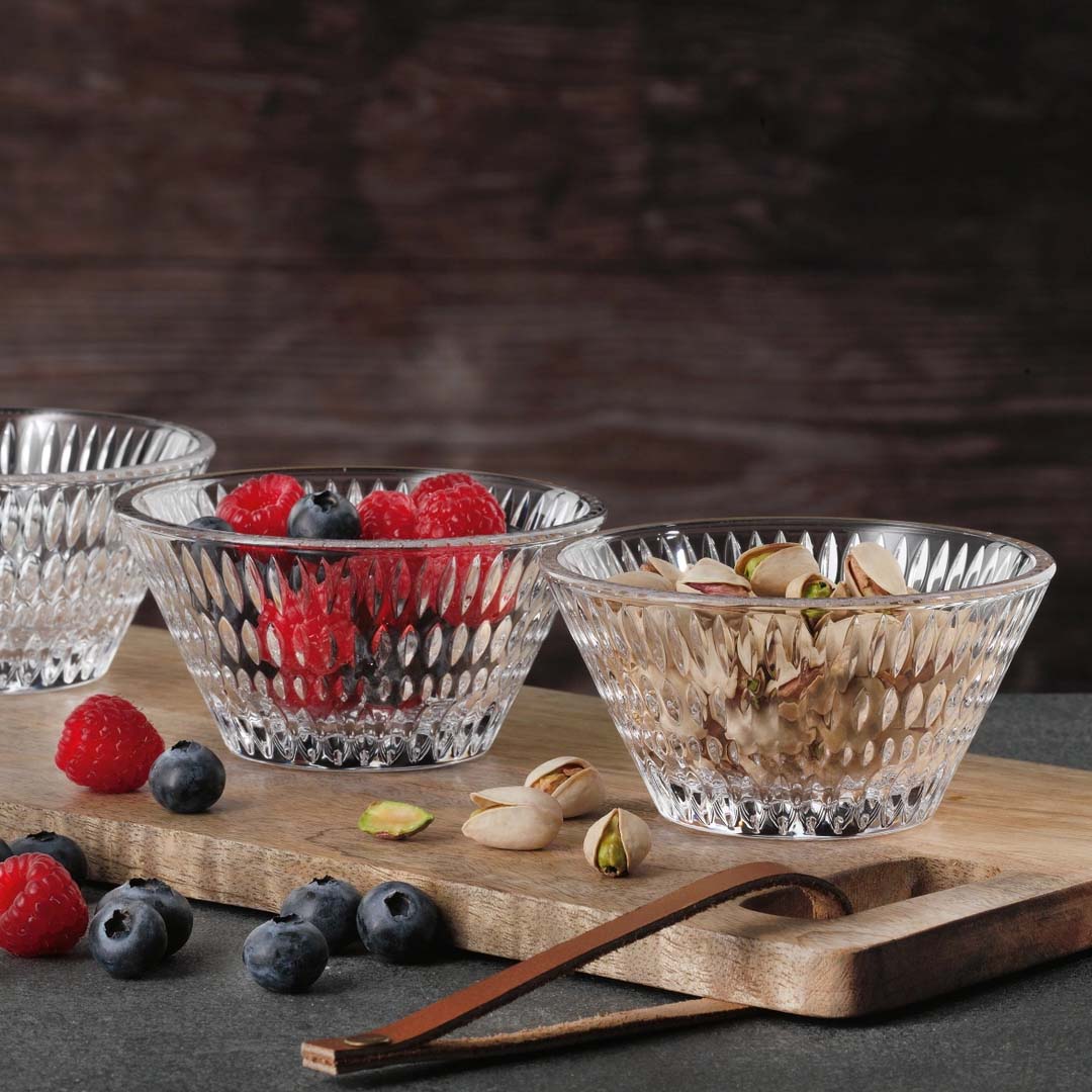 Kompakt ve zarif tasarımıyla öne çıkan bu 4’lü kase seti, 190 ml hacmiyle tatlı, meze ve atıştırmalık sunumları için idealdir. Kristal camdan üretilmiş bu kaseler, Ethno koleksiyonunun modern arabesk estetiğini taşır.