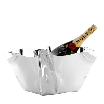Fiori Şampanya Kovası, modern çelik gövdesiyle kutlamalara zarif bir ışıltı kazandırır. Geniş hacmi sayesinde şampanya ve soğuk içeceklerin ideal sıcaklıkta sunulmasını sağlar. Parlak yüzeyi masaya sofistike bir yansıma ekler.