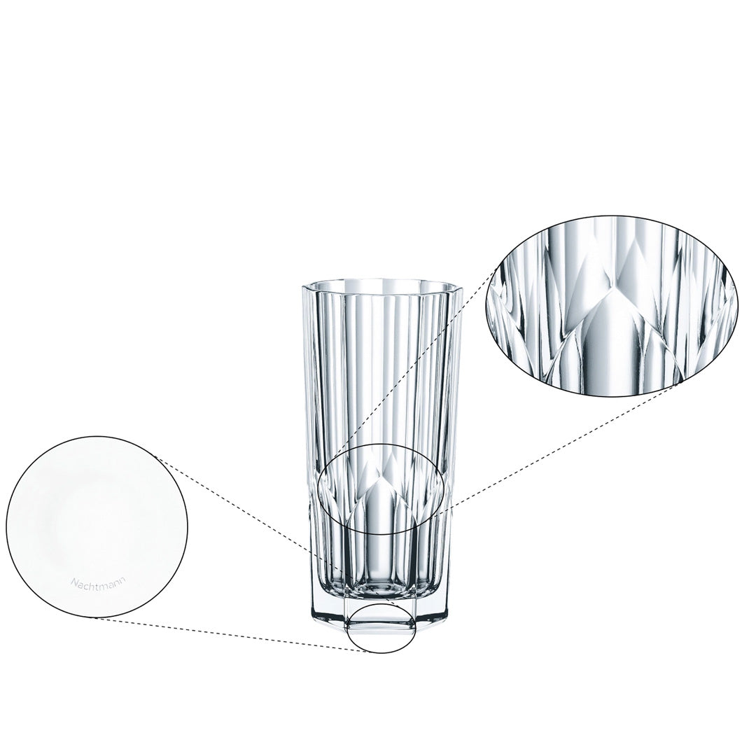 Nachtmann’ın zamansız tasarım anlayışını yansıtan Aspen Meşrubat Bardağı, günlük kullanımda olduğu kadar özel anlarınızda da zarif bir duruş sergiler. 309 ml hacme sahip bu bardak, kristalin parlaklığı ve keskin hatlarıyla sofistike bir estetik sunar.