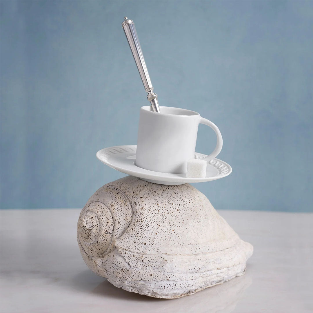L’OBJET Neptün Espresso Fincanı ve Tabağı, mitolojik zarafeti modern tasarım anlayışıyla bir araya getirerek espresso ritüelini estetik bir deneyime dönüştürür. Denizlerin tanrısı Neptün’den ilham alan bu özel parça, heykelsi formları ve incelikli detaylarıyla sofralarda güçlü bir görsel etki yaratır. İnce porselenden üretilen fincan ve tabağı, L’OBJET’nin imzası niteliğindeki el işçiliğiyle şekillendirilmiş olup 24 ayar altın dokunuşlarla zenginleştirilmiştir.