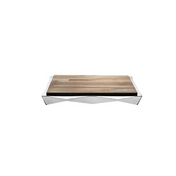 Origami Dikdörtgen Ahşap Servis, doğal ahşap yüzeyi ve çelik detaylarıyla sofistike bir sunum alanı sunar. Geniş ölçüleri sayesinde peynir, şarküteri ve özel ikramlar için ideal bir servis çözümüdür.