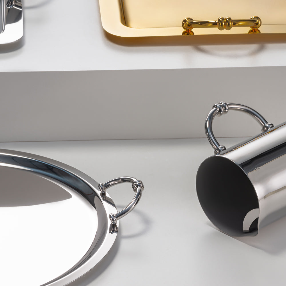 Söz tepsisi ya da nişan tepsisi olarak da kullanabileceğiniz Ferrera gümüş yuvarlak kulplu tepsiyi evinizde ister mutfak eşyası olarak ister dekor amaçlı kullanın!