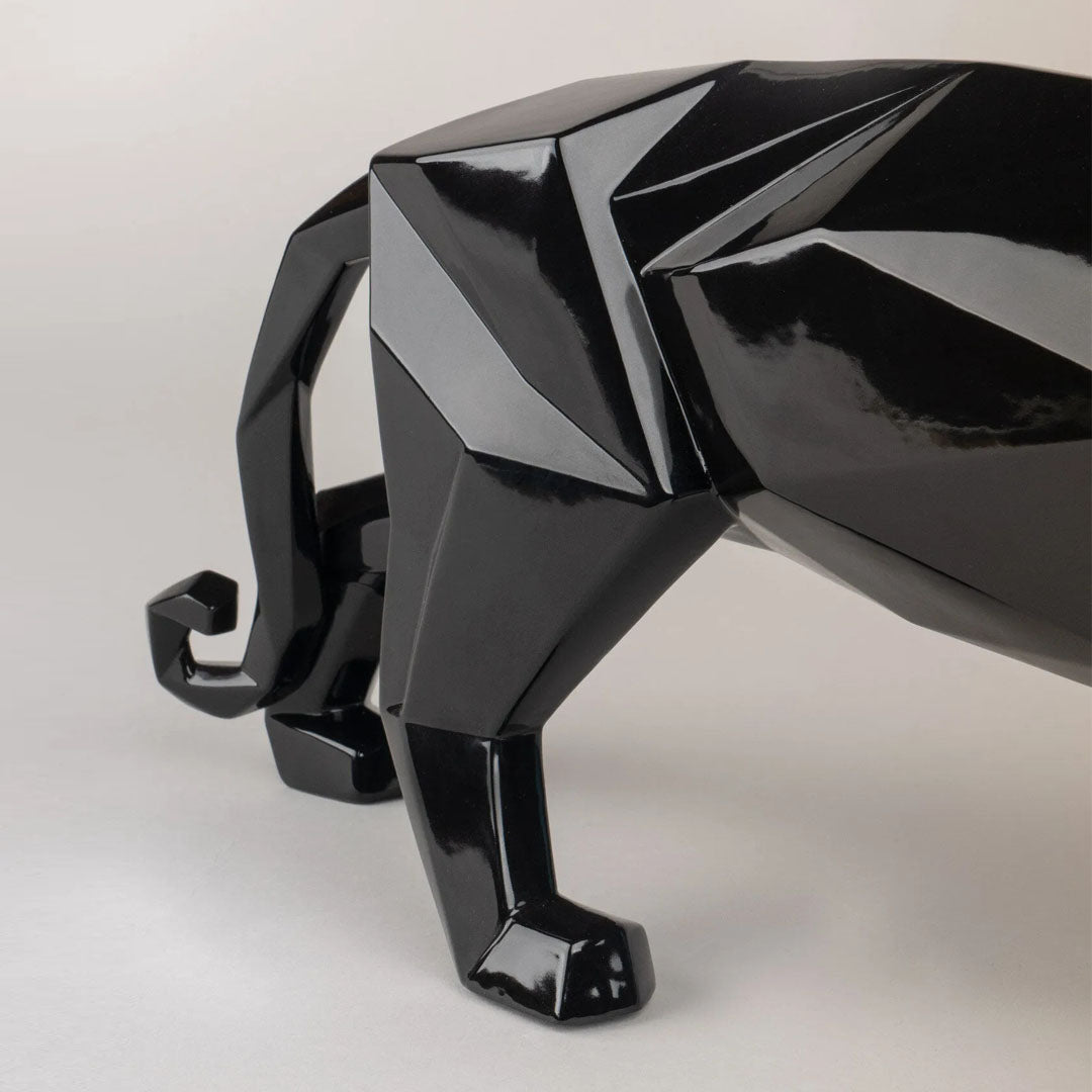 Panter heykelciği, Lladró'nun Origami koleksiyonundan tamamen siyah sırlı porselenden yapılmış, zarafeti ve önemli dayanıklılığıyla takdir edilen bir malzeme olan, parlak porselendeki gözlerin benzersiz dokunuşuyla heykelciğe eşsiz bir stil kazandıran yenilikçi bir parçadır. Bu sırlı siyah Panter heykelciği, Japon kağıt katlama tekniğinden ilham alarak hoş bir geometrik figür yaratır; yenilikçi stili sayesinde Panter her türlü ortam ve dekor stiliyle uyum sağlar: ister bir yatak odasına, ister modern tarzda bir oturma odasına veya daha klasik bir salona yerleştirilsin, bu parça tüm misafirlerinizin dikkatini çekecektir. Lladró'nun işçiliği, detaylar ve titiz dikkat yoluyla sergilenir; her eğri ışığı farklı şekilde yansıtacak şekilde tasarlanmıştır ve bu muhteşem avcının kaslarını ve gururunu vurgulayan ince gölgeler oyunuyla figürü canlandırır. Panter heykelciği, eve taşınma partileri veya diğer özel günler için mükemmel bir hediye fikridir. Marco Antonio Noguerón tarafından Lladró için tasarlanmıştır.