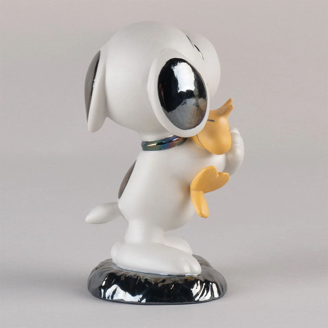 Mat ve sırlı porselenden yapılmış, sedef tonlarıyla süslenmiş Snoopy heykelciği. Charles Schulz'un Peanuts çizgi romanı için yarattığı karakterlerden biri, mat ve sırlı porselenden yapılmıştır. Burada sadık dostu Woodstock'a sarılan Snoopy, Schulz'un yaklaşık 50 yıldır bestelediği çizgi romanının ilk kez ortaya çıkışının 70. yıl dönümünü kutlamak için özel bir dekorasyon ve anma çıkartmasıyla sunulmaktadır.