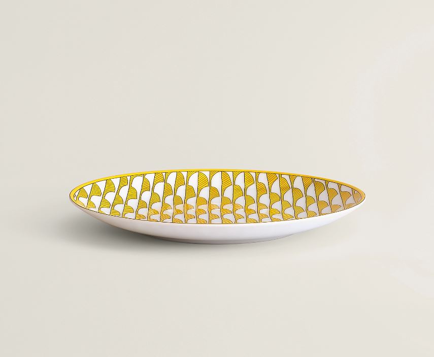 Soleil d'Hermés, Akdeniz güneşi altında bizi yazın sıcaklığına taşıyor, yoğun parlak ışığı mimarinin ve nesnelerin ana hatlarını dönüştürüyor. Tasarımın spontane doğası, renge güç ve derinlik katan ince tonlarda sarıyı yükseltir. Konturların ince çizgisi ve çapraz tarama, güneşin yoğunluğunu güçlendirir. Set, şekiller ve ritimlerden oluşan bir kaleydoskop oluşturmak için yayılan ışık, eğriler ve soyutlamaya odaklanan bir grafik illüzyon kullanır. Yaza ve eğlenceye övgü niteliğindeki Soleil d'Hermés, her masayı aydınlatır.