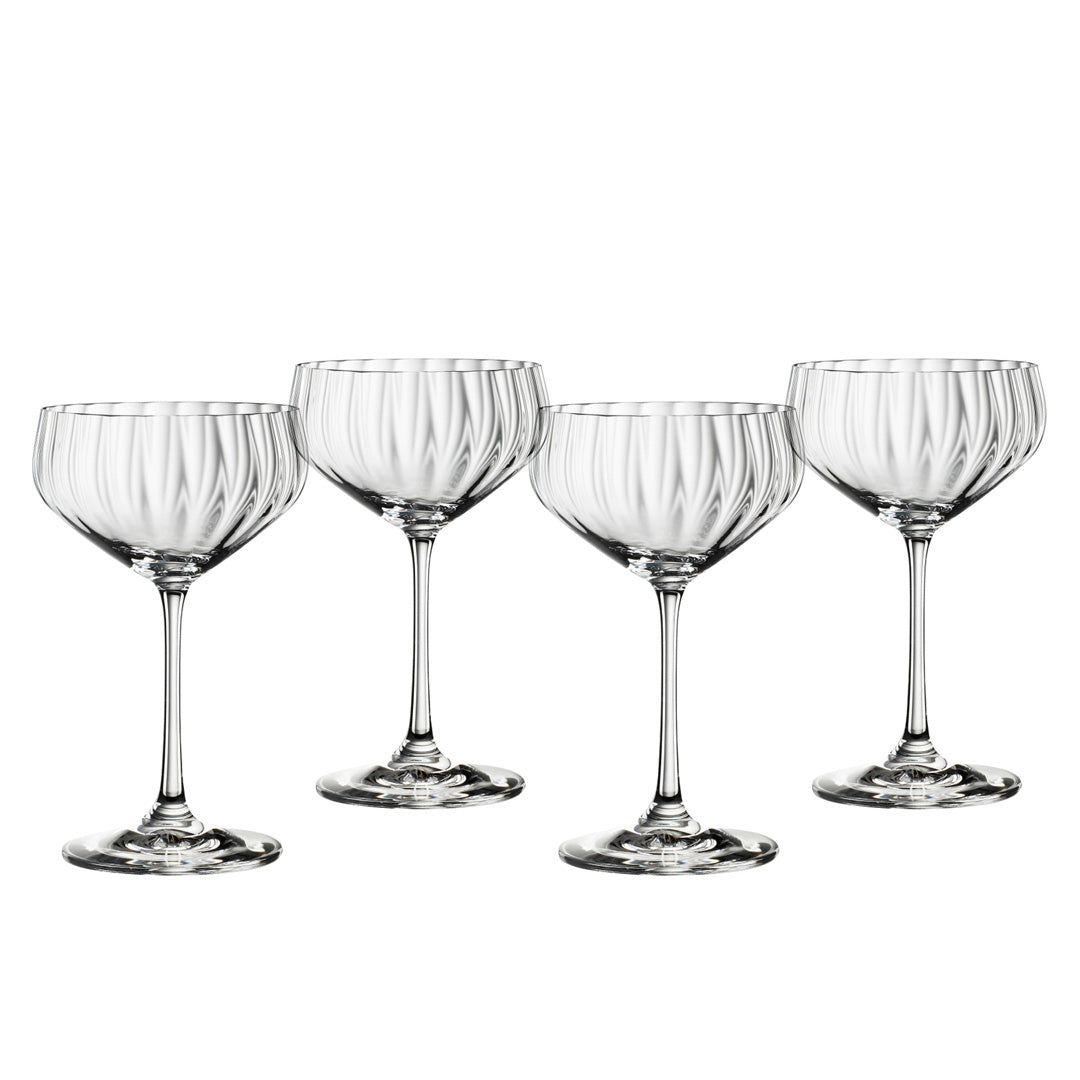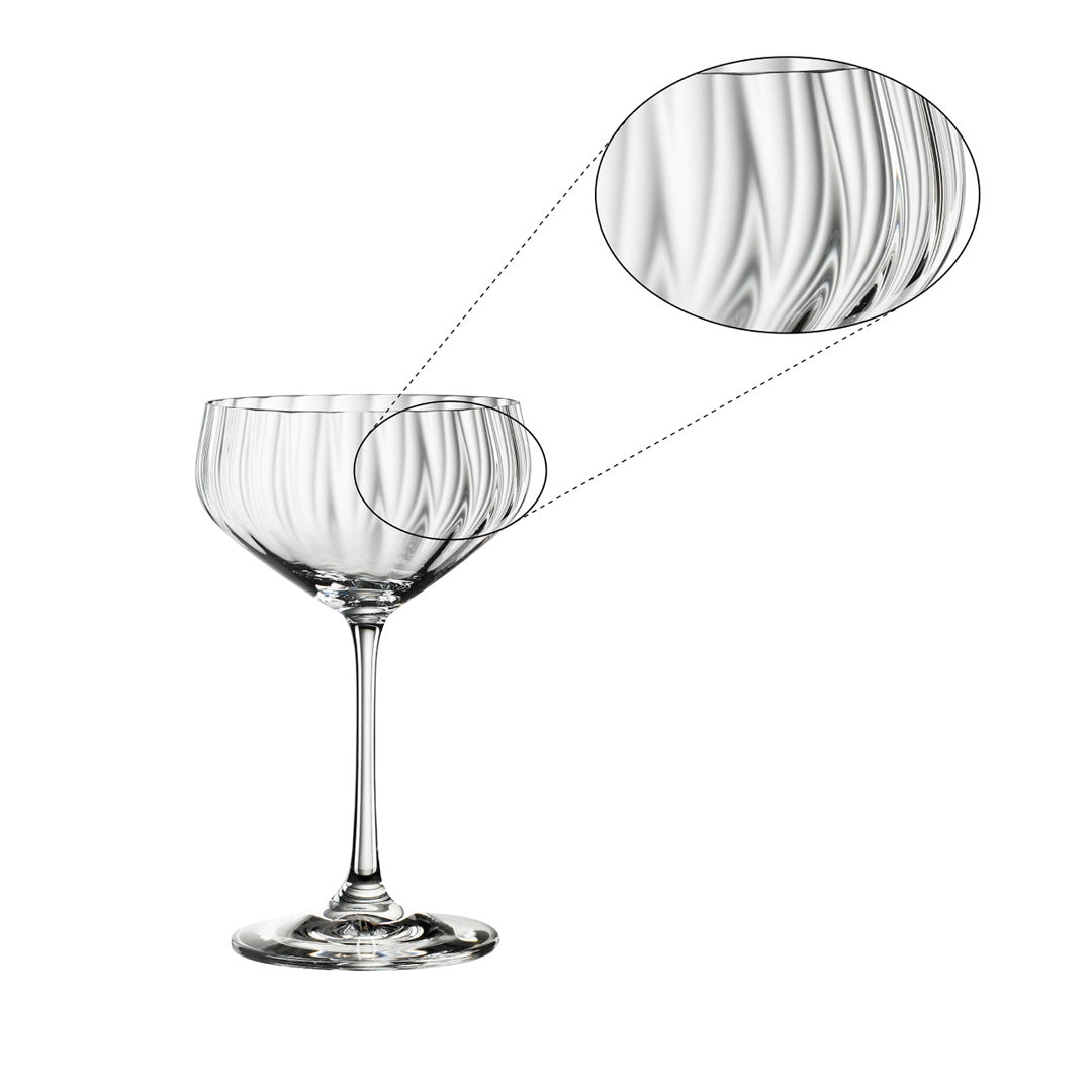 Fransız kökenli "Coupette" formuyla tasarlanan bu özel kokteyl kadehleri, içki sunumlarını sanatsal bir boyuta taşıyor. 310 ml kapasiteye sahip olan kadehler, karışım oranı yüksek içecekler ve frozen kokteyller için idealdir.