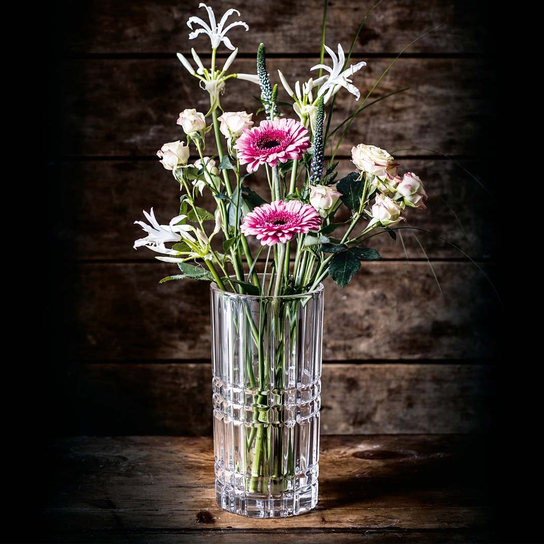 Modern çizgilerle şekillenen Square Kristal Vazo, yalın zarafetin güçlü bir temsilcisi. 23 cm yüksekliğindeki bu göz alıcı parça, net geometrik formu ve keskin hatlarıyla çağdaş dekorasyonlara kusursuz bir şekilde uyum sağlar. Yüksek kaliteli kristal camdan üretilen vazo, sade tasarımına rağmen ışığı büyüleyici şekilde yansıtarak her ortamda dikkat çeker. Çiçek aranjmanlarınızı estetik bir kompozisyonla sergilemek ya da tek başına şık bir dekoratif obje olarak kullanmak için idealdir.