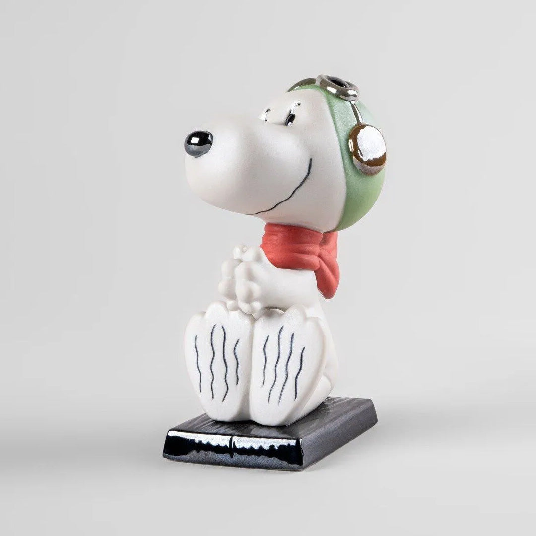 Ünlü çizgi roman karakteri Snoopy'yi tasvir eden porselen eser. Snoopy ve Charlie Brown, Charles Schulz'un Peanuts çizgi romanı için yarattığı ünlü karakterlerdir ve Lladró sanatçıları şimdi onları porselende yeniden yarattılar. Snoopy Flying Ace, Snoopy'yi cesur bir pilot olarak fantezilerinden birinde sadakatle yeniden üretiyor. Atkısı için gümüş parlaklığı ve kırmızı içeren dikkatlice seçilmiş bir dekorasyonla saten beyaz porselenden yapılmıştır.