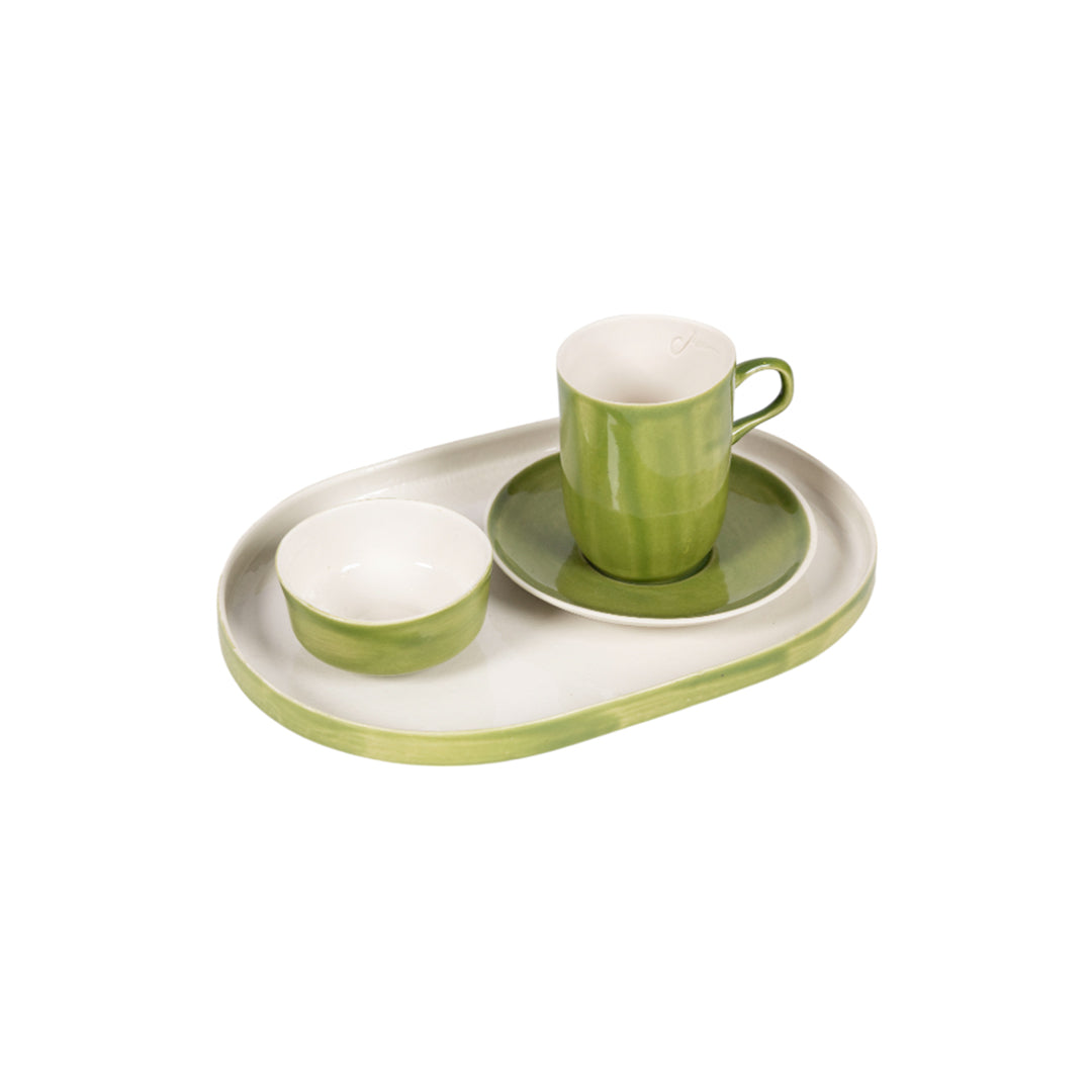 Evinizde hem şıklık hem de işlevsellik arayanlar için, Saliha Kartal’ın Yeşil Oval Seramik Tepsi’si mükemmel bir tercih. Bu tepsi, sadece bir servis aracı olmaktan çok daha fazlasını sunuyor. Sofralarınıza ve evinize doğanın tazeliğini ve zarafetini getiren bu özel tasarım tepsiyi keşfedin.