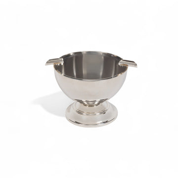 Klasik bir tasarımı modern çizgilerle buluşturan bu yuvarlak gümüş kaplama ayaklı küllük, 11 cm çapı ve 8 cm yüksekliğiyle işlevsel bir obje olmasının ötesinde dekoratif bir parça olarak da dikkat çeker. Parlak gümüş kaplama yüzeyi, zamanla oluşan doğal patinasıyla daha da karakter kazanır. Estetik formu ve ayaklı yapısı, masa üstü ya da sehpa düzenlemelerinde nostaljik bir zarafet sunar. Tütün severlerin klasik tarzda bir tamamlayıcıya sahip olmasını sağlayan bu küllük, aynı zamanda içki köşeleri ya da ofis ortamları için de şık bir detaydır. Dilerseniz mum altlığı ya da küçük objelerin sunumu için de alternatif amaçlarla kullanılabilir. Vintage koleksiyonlar ve retro dekorasyonlar için uyumlu olan bu parçayla ortamınıza nostaljik bir şıklık kazandırabilirsiniz.